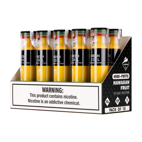 - Flavor: The Hawaiian Fruit Tugpod Evo 4500 vape uses a tremendously unique tropical fruit blend that is loaded with flavor in every puff. Hawaiian Fruit uses a sweet pineapple base and complements it with papaya and lychee flavors to make a great all day vape.