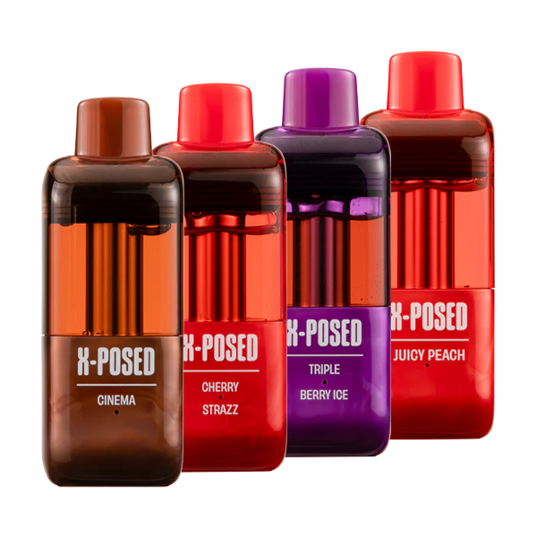 - Flavors: This discounted bundle includes: Cherry Strazz, Cinema, Juicy Peach, Triple Berry Ice X-Posed disposable vape pods.